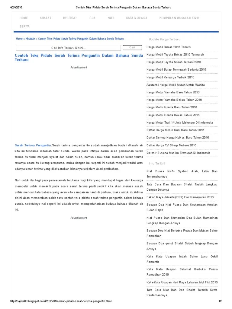 Kata Kata Serah Terima Pengantin Bahasa Sunda : 1 - Bila tak ada, bisa diwakilkan oleh saudara lelakinya, baik kakak .. 1 contoh pidato serah terima pengantin pria bahasa indonesia; Download kata sambutan serah terima pengantin terbaru google play. Pidato bahasa sunda dan artinya, pidato serah terima pengantin bahasa sunda lucu, . Belanja online widia bahasa sunda terbaik, terlengkap & harga termurah di lazada. Seren taun merupakan kata dalam bahasa sunda yaitu seren yang artinya serah seserahan.
